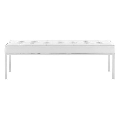 White Faux Leather Tufted Stainless Steel Leg Bench