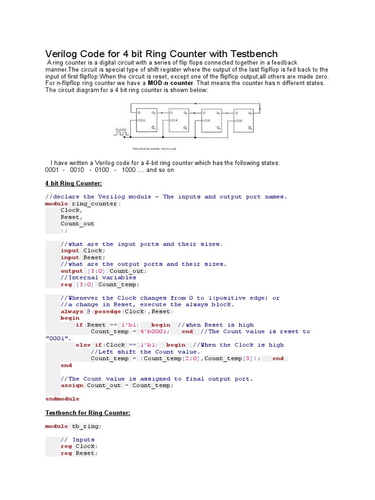 Verilog Code For 4 Bit Ring Counter With Testbench