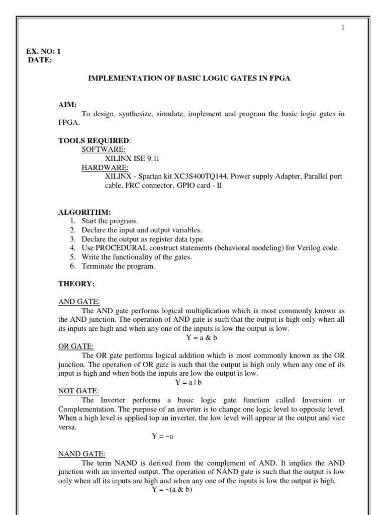 Experiment Write Vhdl Code For Realize All Logic Gates