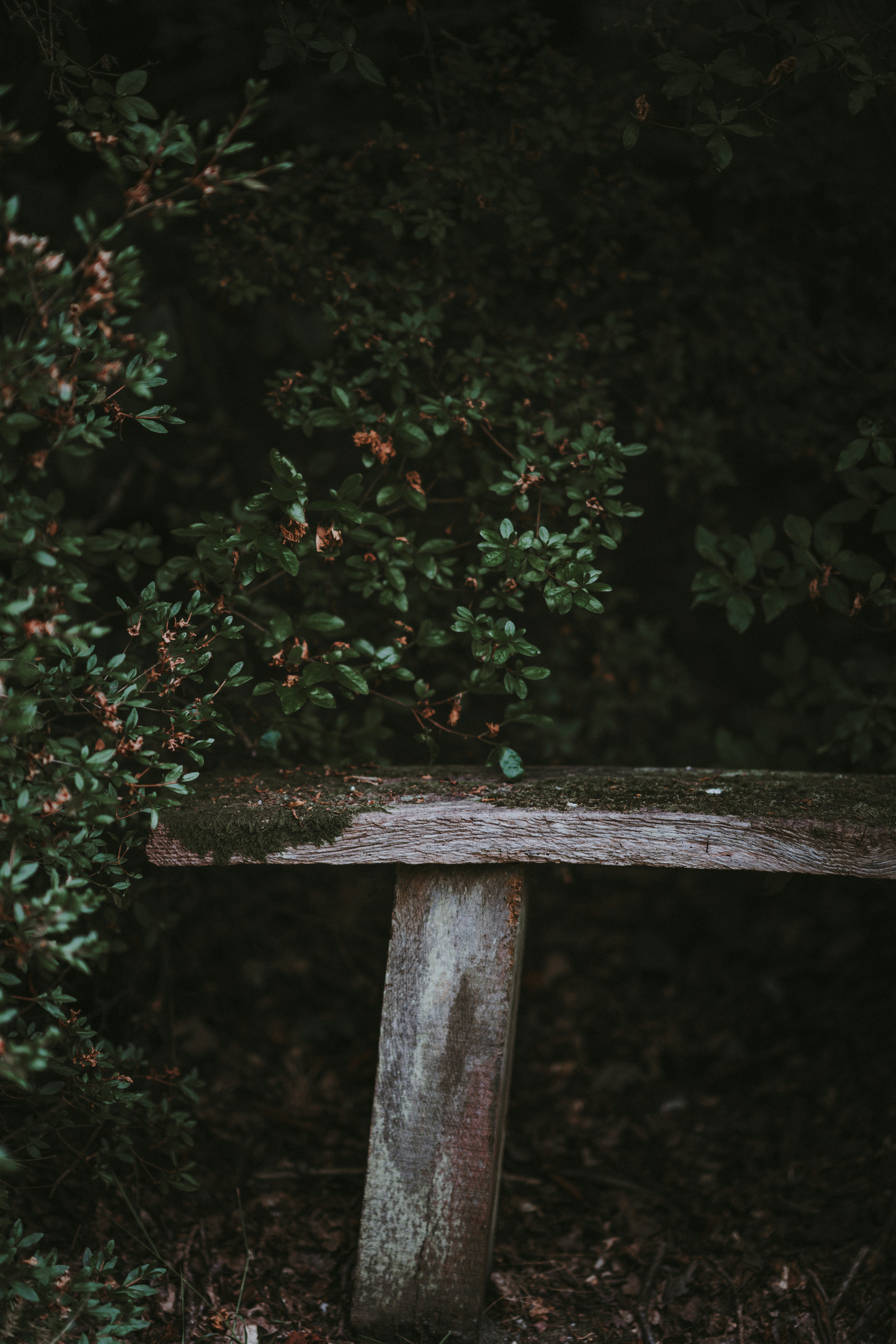 Gray Wooden Bench Surrounded By Plants Free Stock Photo