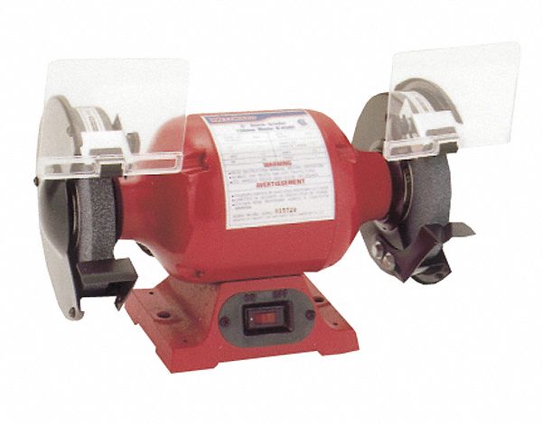 Westward 1ken1 bench grinder wheel dia 8 in max rpm 3450 12 hp voltage 115 30 amps ac 1 phase 60 hz arbor hole 58 in face wheel dimensions 34 in wheels center center 12 in length 14 34 in height 10 1316 in dust collection exhaust port 3 in wheel material aluminum oxide 3660 grit light includes grinding wheels light bulb.