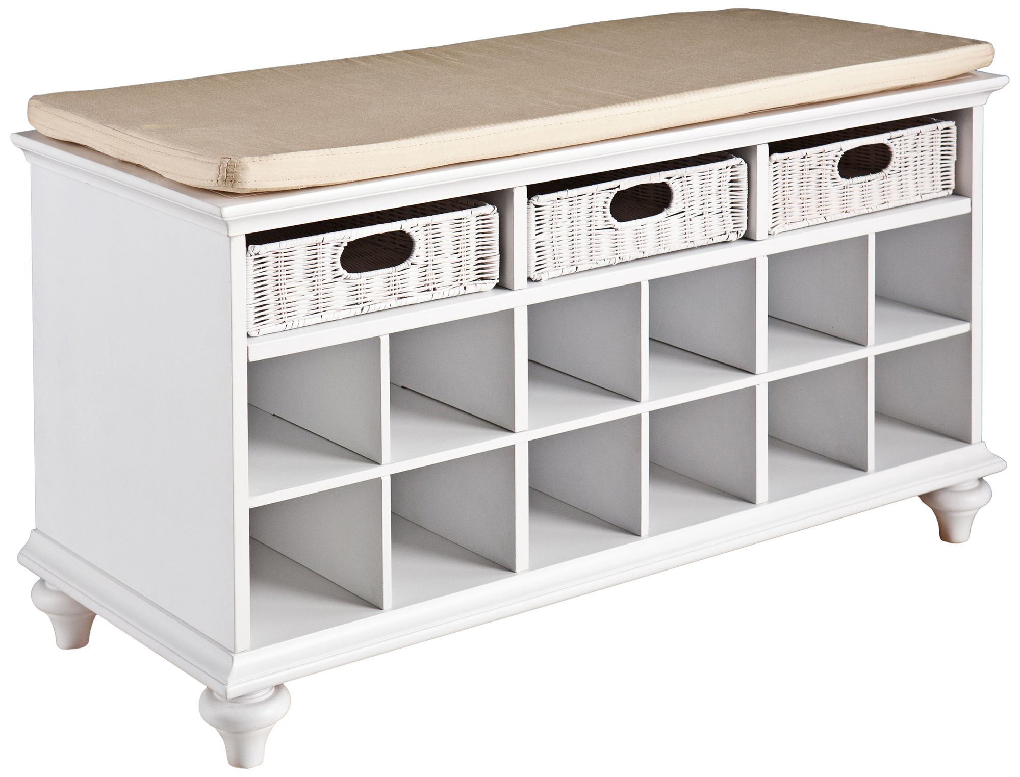 White wood bench with storage. Find wood metal and upholstered benches to fit with nearly any decorating style. Explore office design products and be inspired by the projects they have been used in. This is an entry bench that makes a strong statement.
