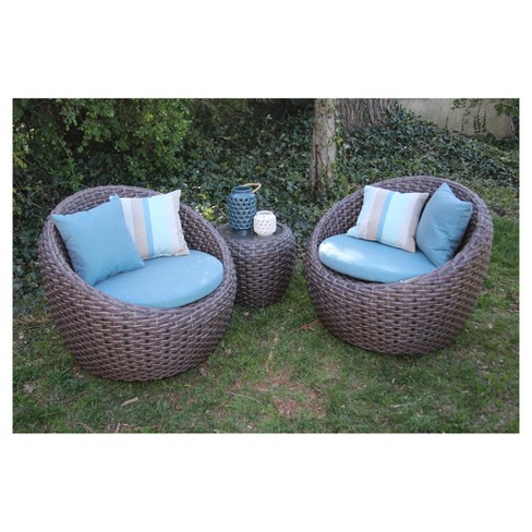 Corona 3pc All Weather Wicker Patio Sectional Seating Sett Blue Ae Outdoor