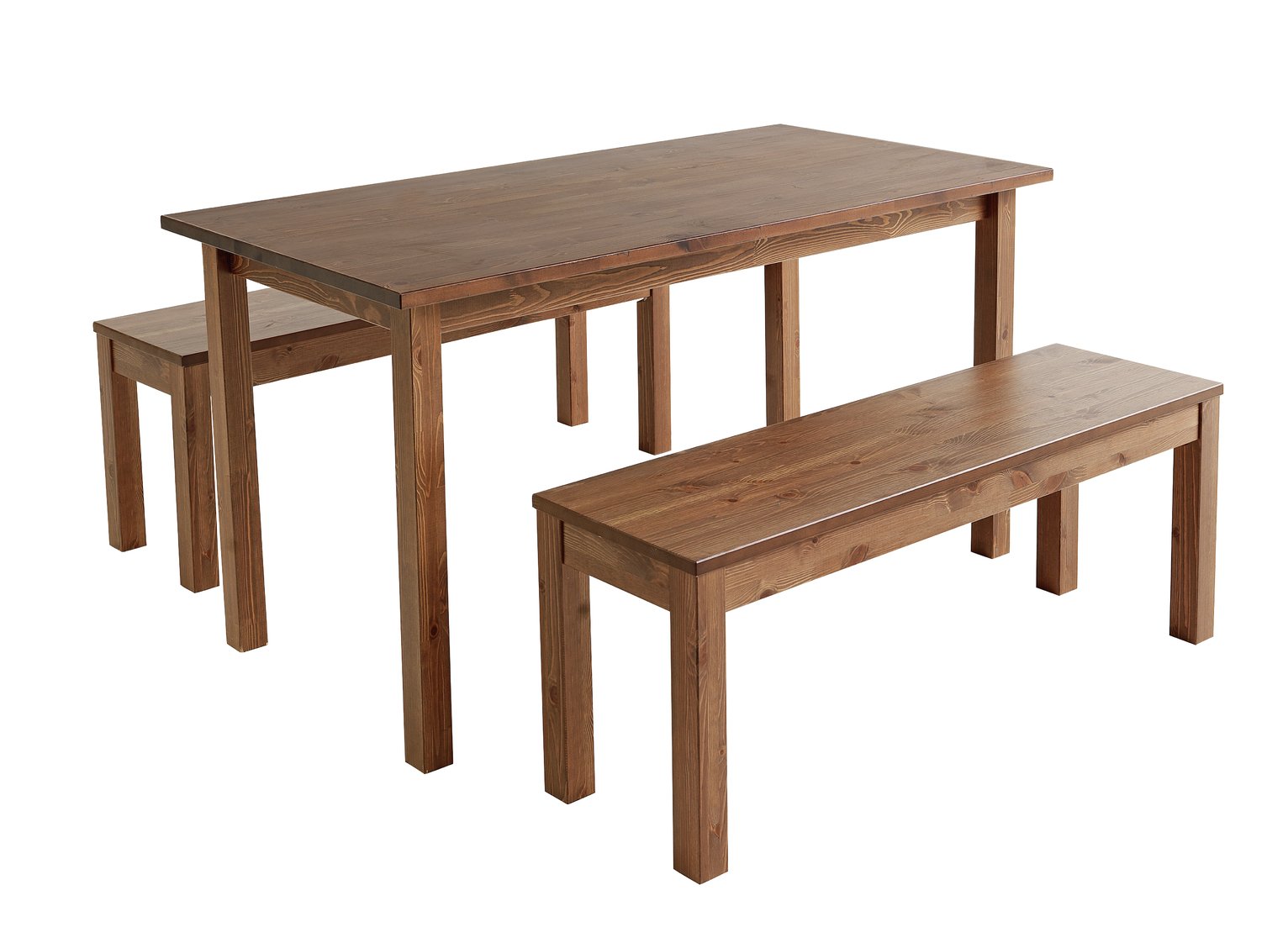 Dark Walnut Moden Dining Table Two Benches 3pc Set