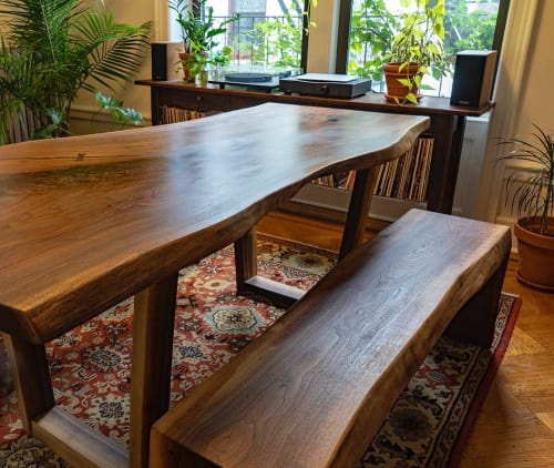 Black Walnut Live Edge Dining Table And Bench Set By