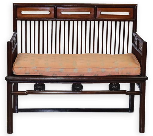 Fine Chinese Wood Settee Bench W Pink Silk Cushion